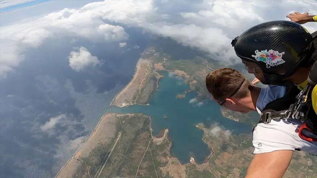 Tijdens het opstijgen en de gehele vlucht zat ik als het ware in de deuropening (met de deur open) en kon ik gewoon naar beneden kijken. Ik zag het hele eiland op een prachtige manier.